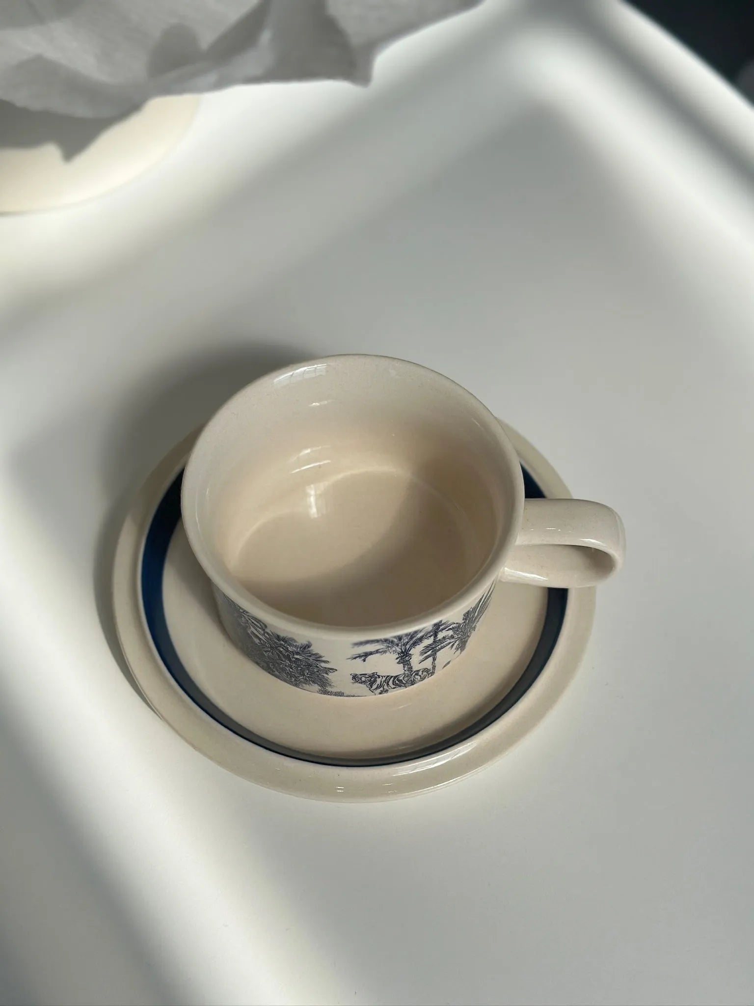 Infuse your beverage routine with a touch of exotic adventure using our Wild Tropics Mug and Saucer. The mug's neutral toned base beautifully contrasts with the rich navy accents, creating a visually captivating design that evokes the spirit of a lush, tropical paradise.
