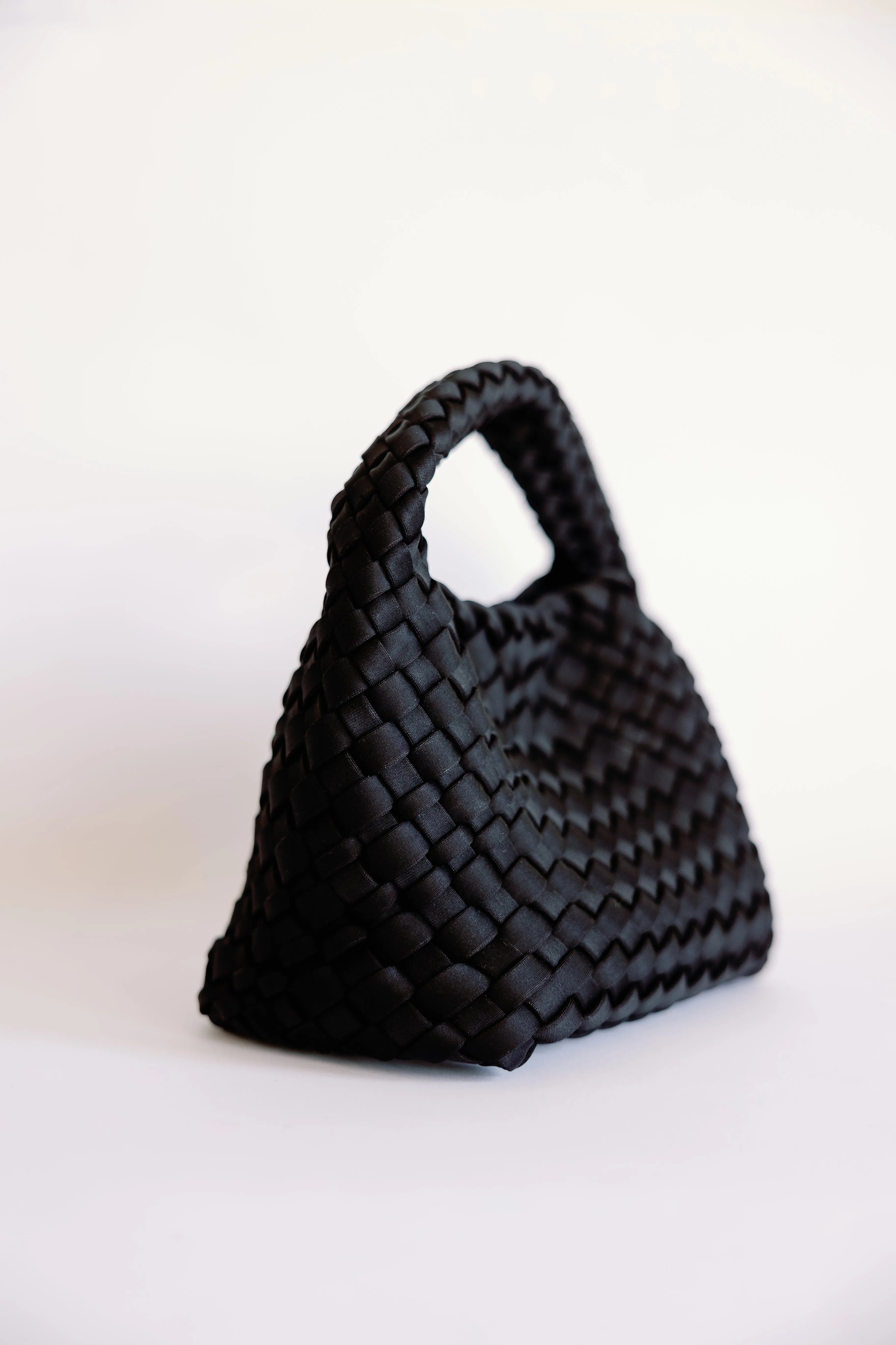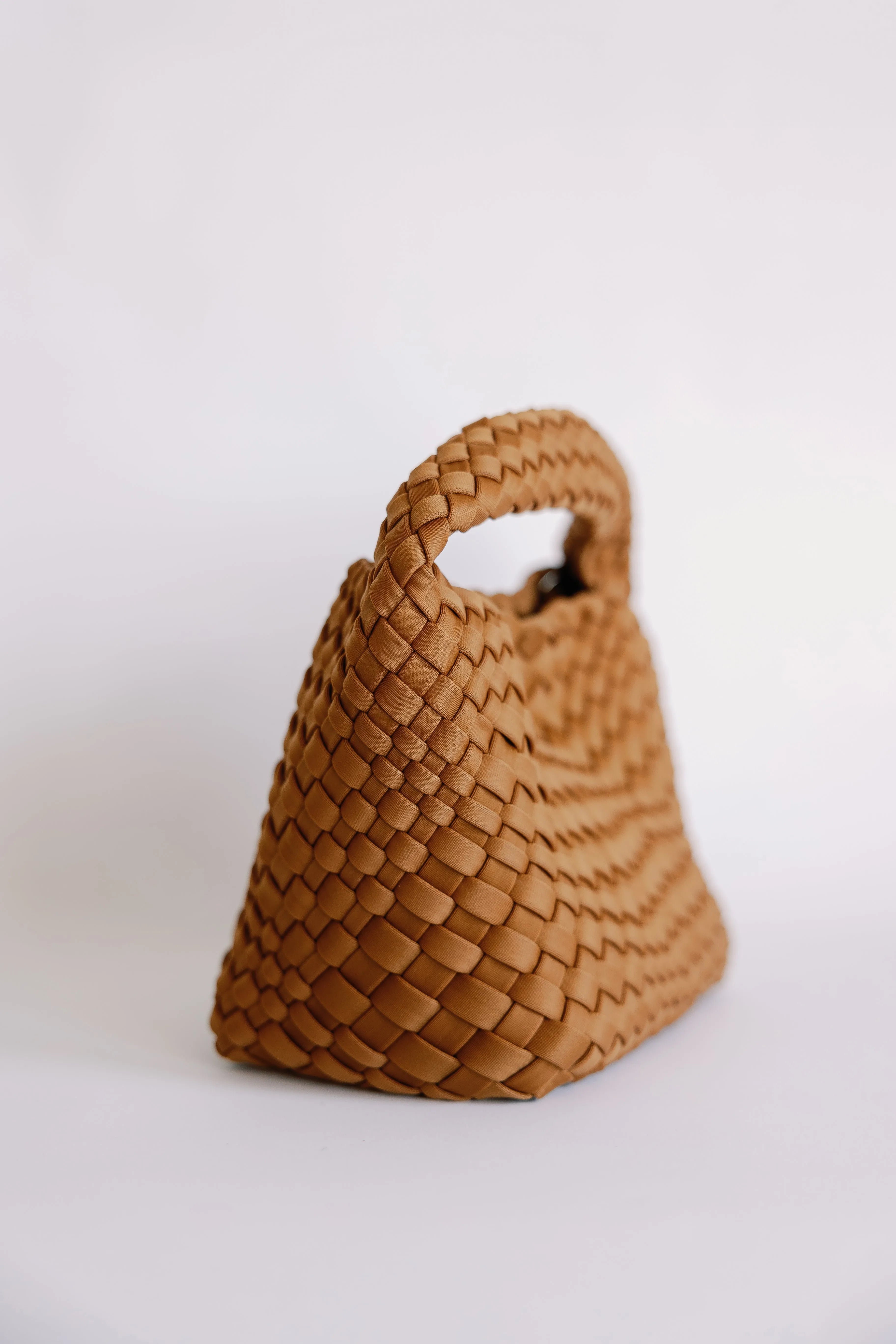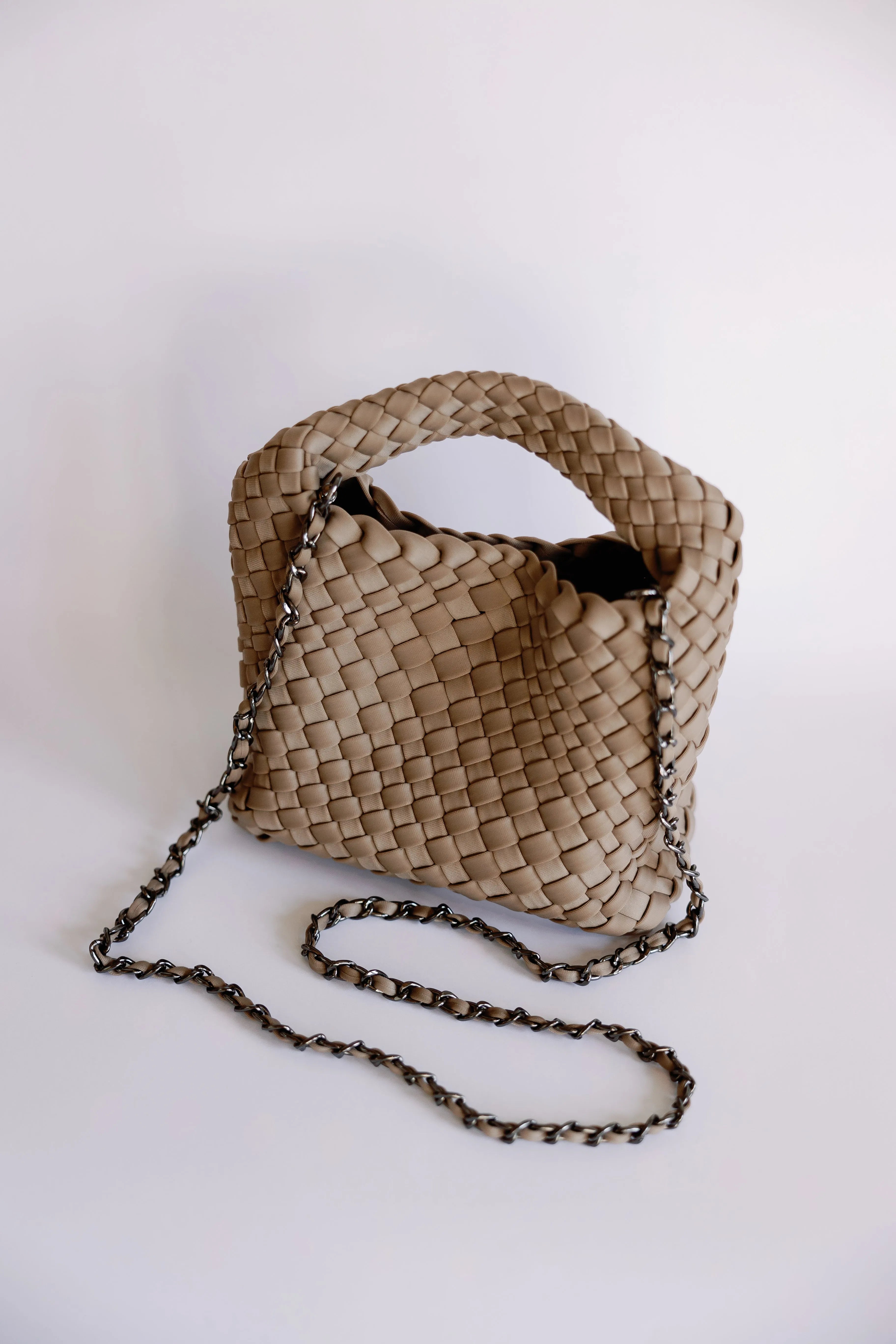 Elevate your everyday style with our woven mini tote. This versatile bag features an intricate basket weave pattern created from durable synthetic materials, offering both style and practicality.�