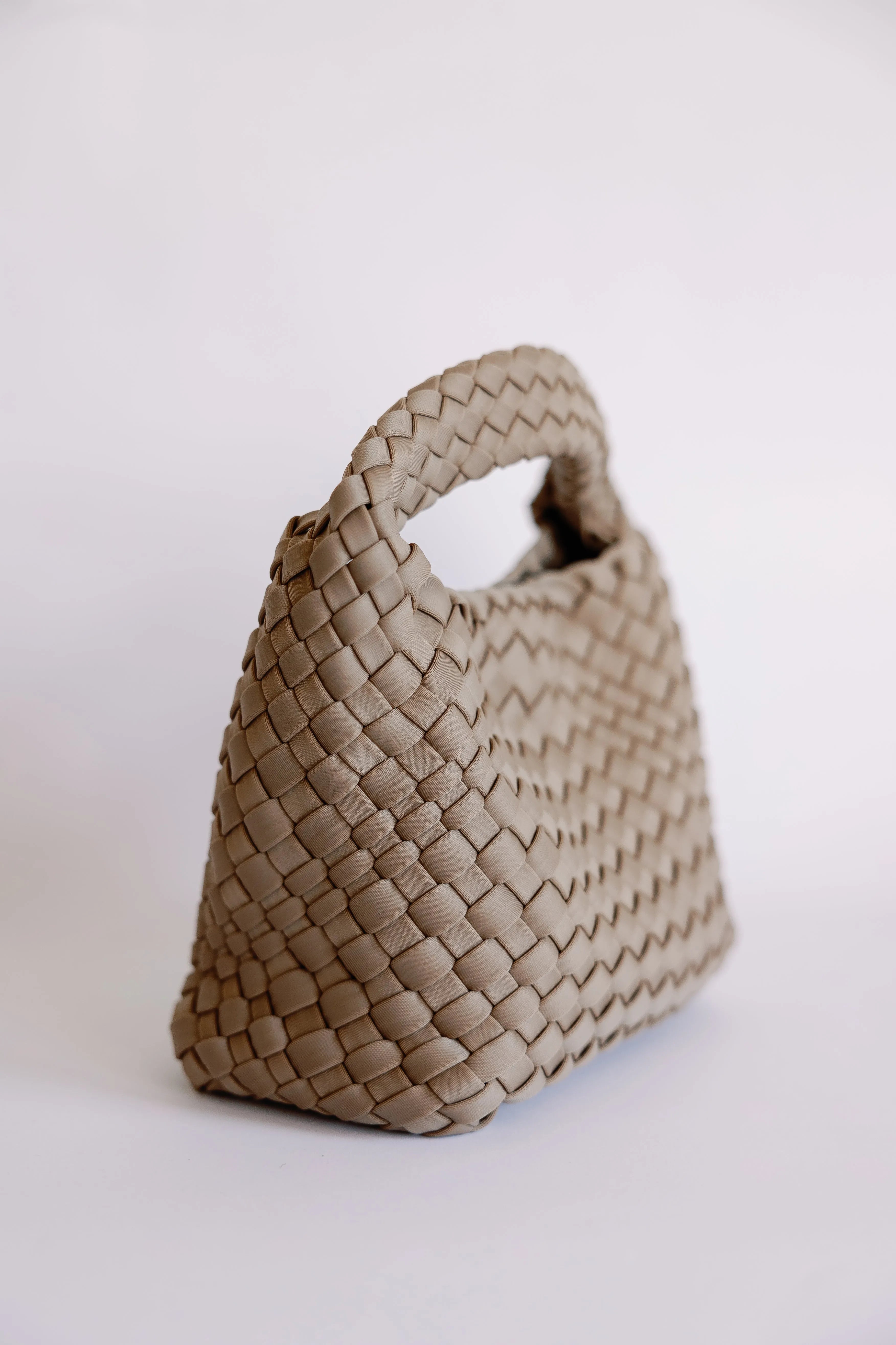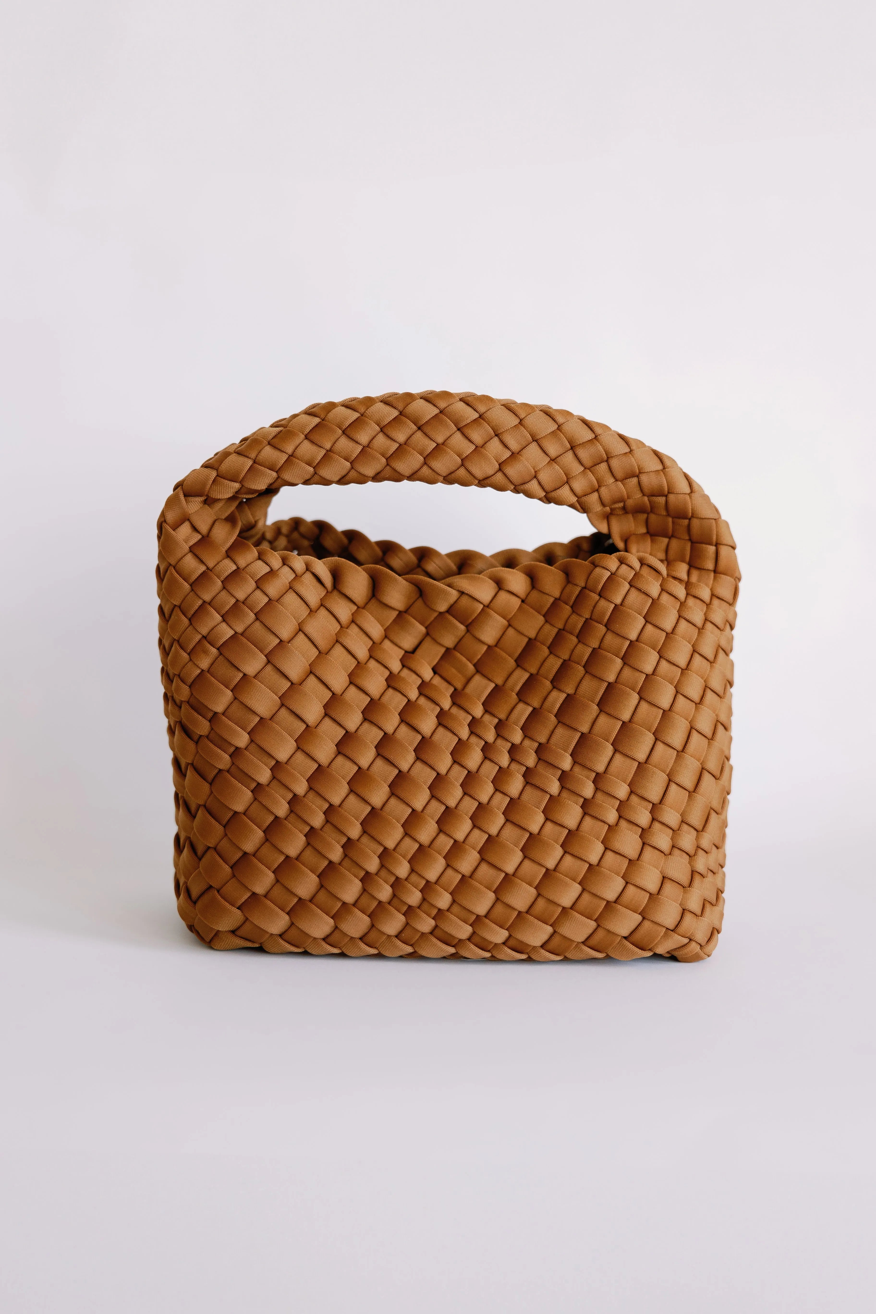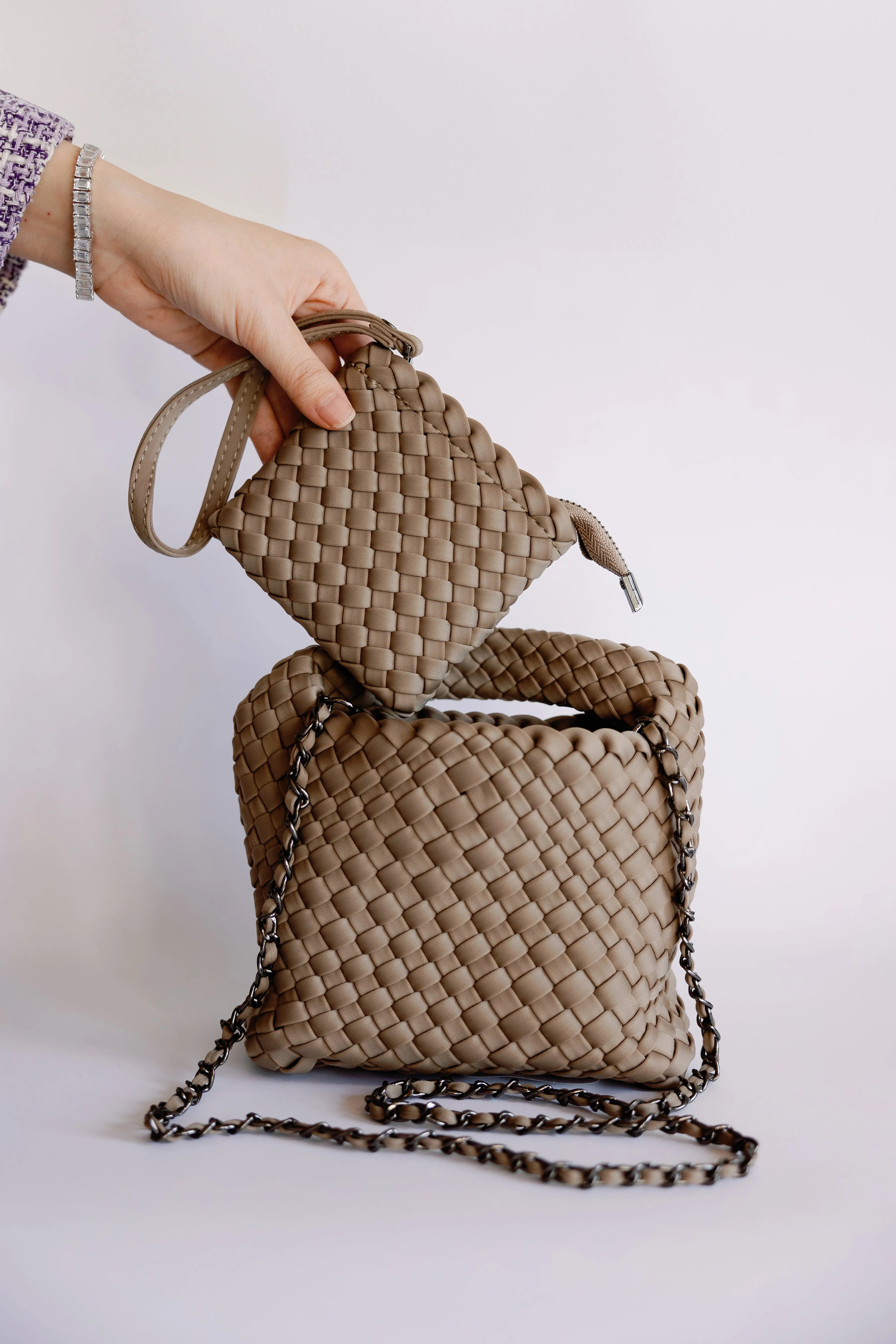 Elevate your everyday style with our woven mini tote. This versatile bag features an intricate basket weave pattern created from durable synthetic materials, offering both style and practicality.�