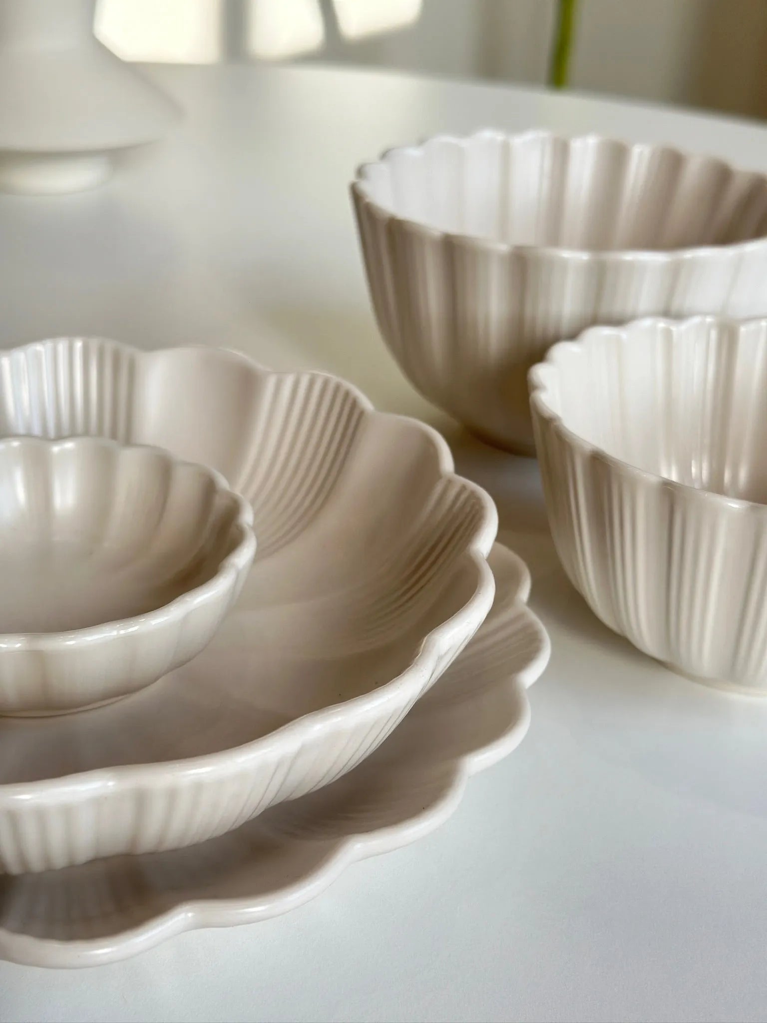 Experience the delicate beauty of nature with our Scalloped Blossom Dish, inspired by the graceful unfolding of a flower blossom. Perfect for serving everything from appetizers to pasta to heartier entrees, this dish adds a sophisticated, organic touch to any table setting. Its unique shape and intricate detailing make it a standout piece, ideal for special occasions or everyday meals.