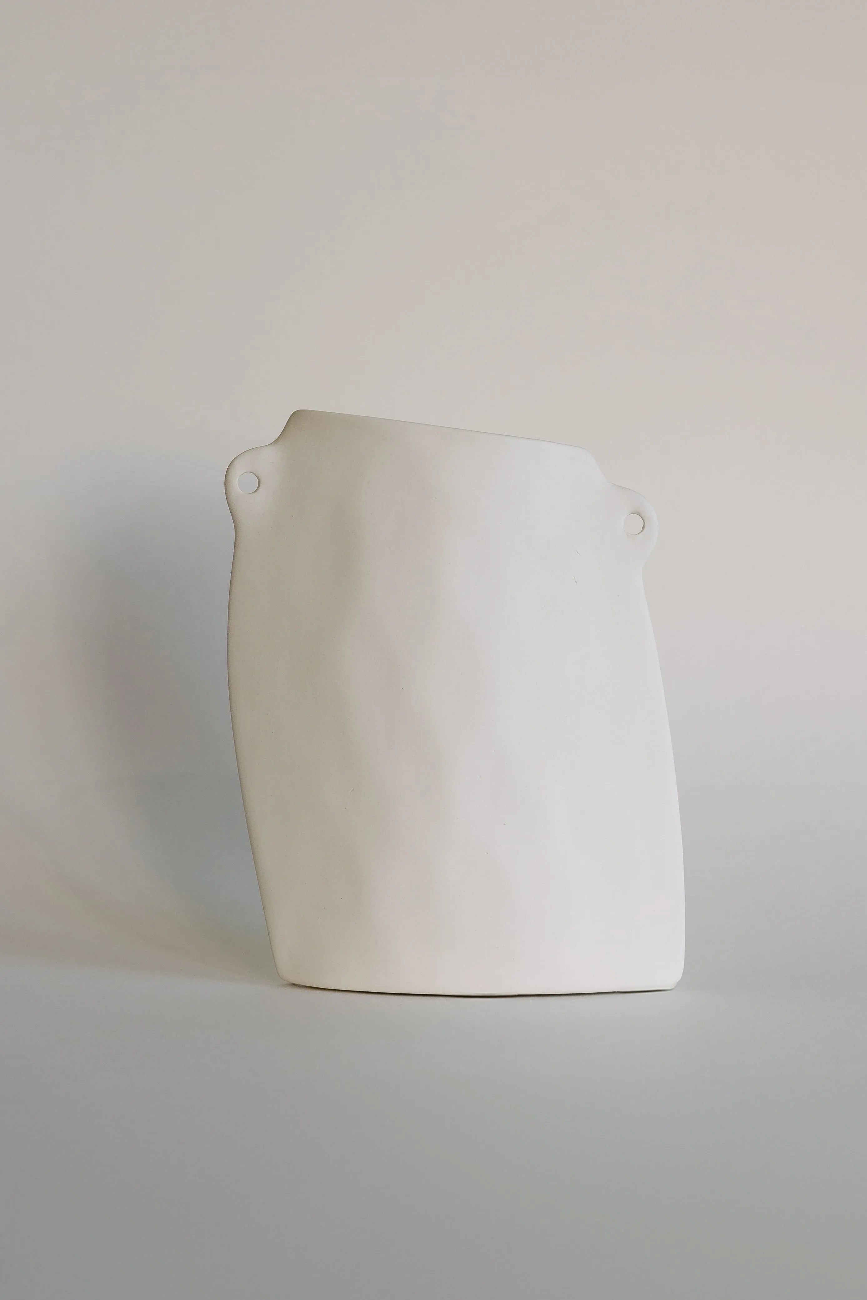 Available in pure white and warm greige, these ceramic vases showcase a smooth matte finish that enhances their sculptural quality. The subtle irregularities in form make each piece feel truly artisanal, while maintaining a refined, contemporary aesthetic.